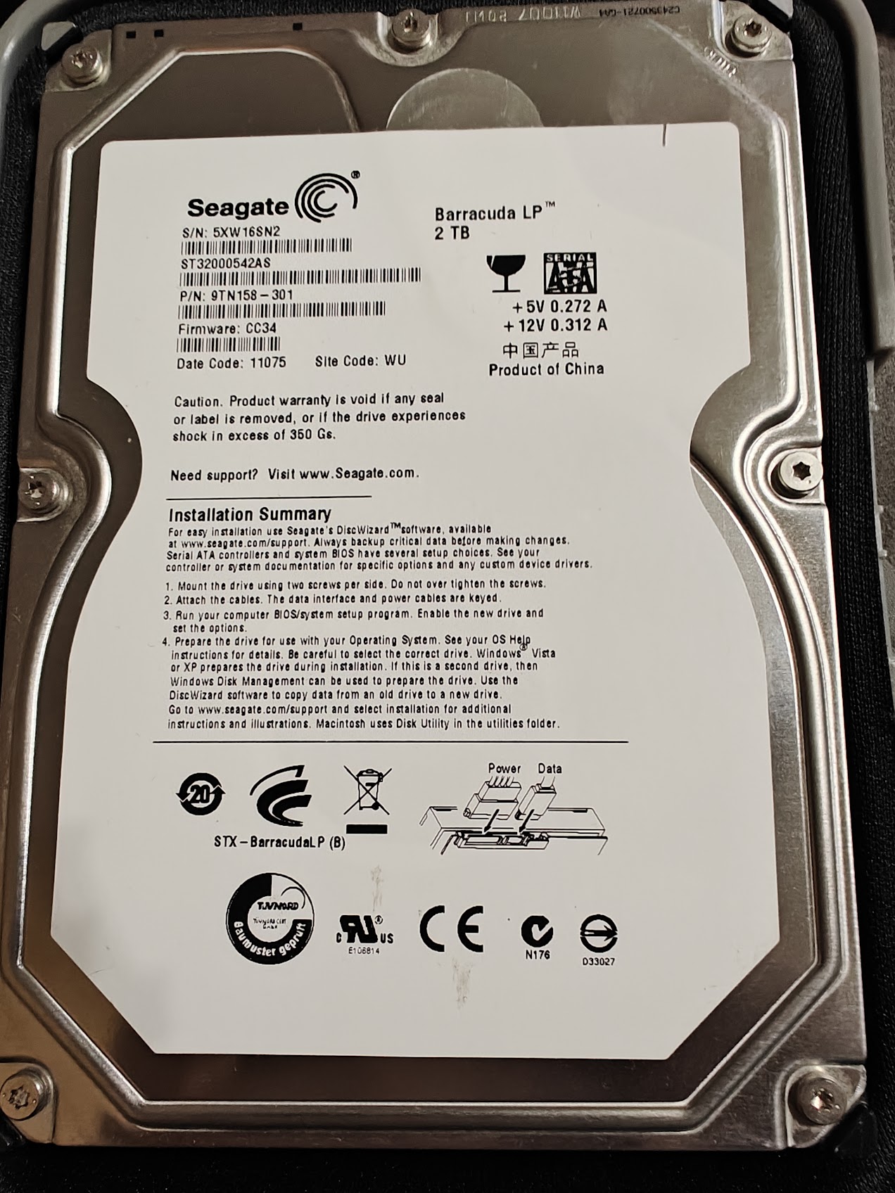 | Pickels2/Old Gallery | Seagate | ST32000542AS_5XW16SN2 | ST32000542AS | 5XW16SN2 | 2TB | Recovered files. Deleted .img. | |