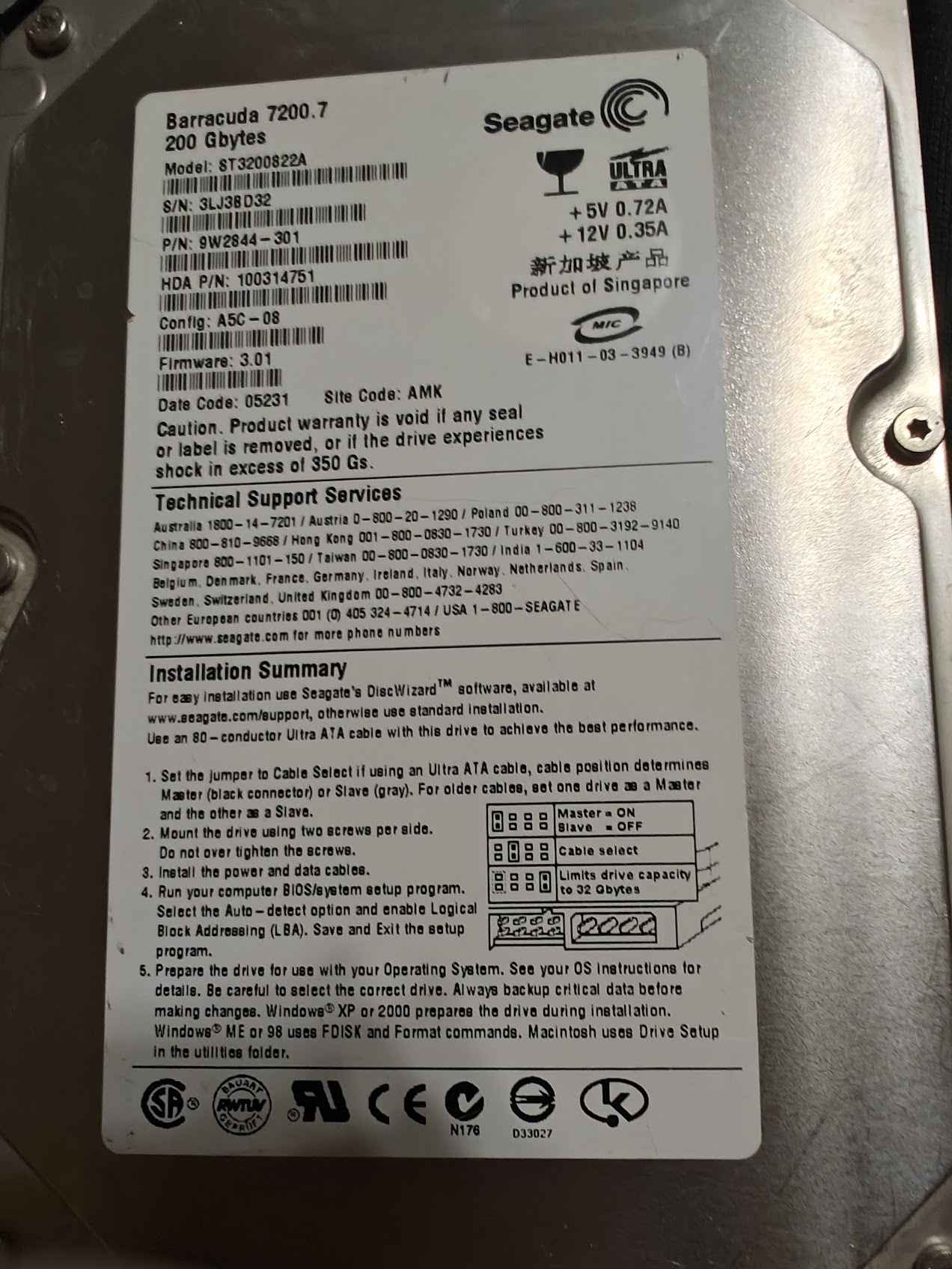 | Smoked/Unknown | Barracuda | 8T3200822a | 3LJ3BD32 | 200GB | Waiting for recovery | ||