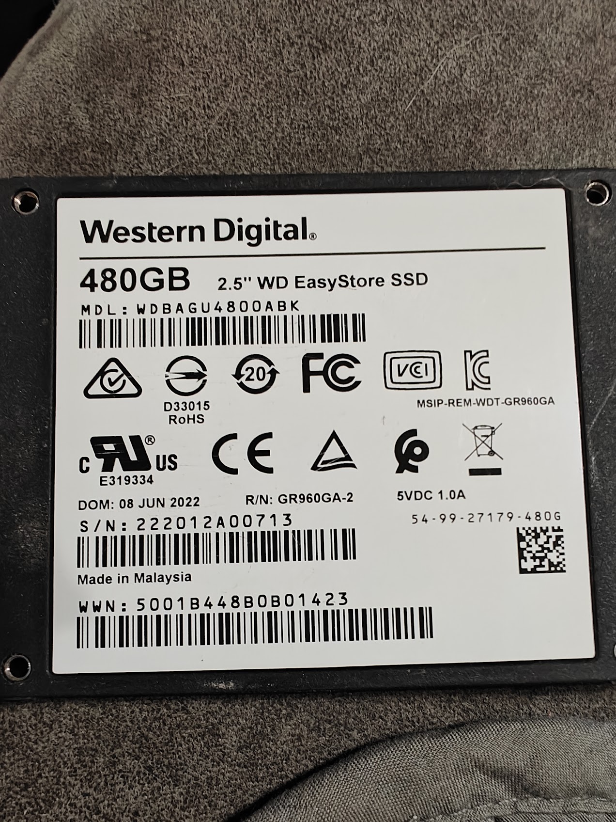 | Unknown/Old ubuntu boot? | WD | SDEZS25-_480G-Z01_222012A00713-0 | WDBAGU4800ABK | 222012A00713 | 480GB | Cloned to /mnt/taketwo/driveClone/ | |